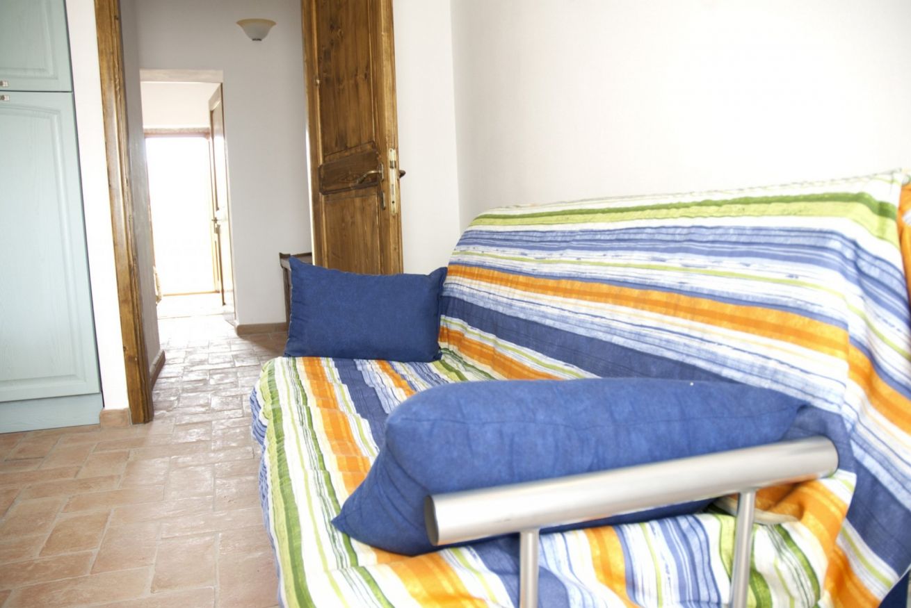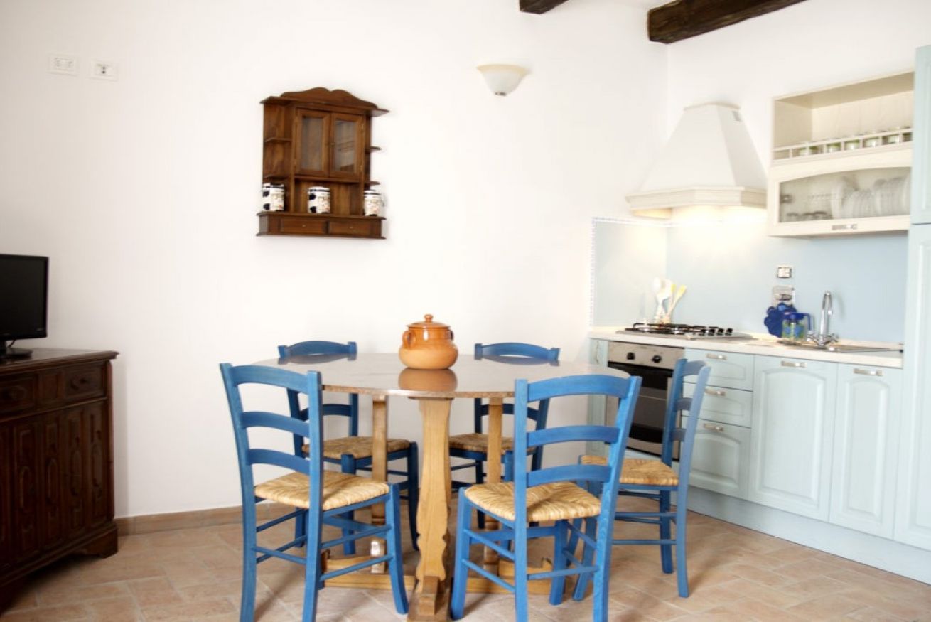Composto di camera matrimoniale, bagno con doccia e zona giorno con cucina completa e divano letto matrimoniale, doppi affacci sul giardino e possibilità di mangiare all'aperto.